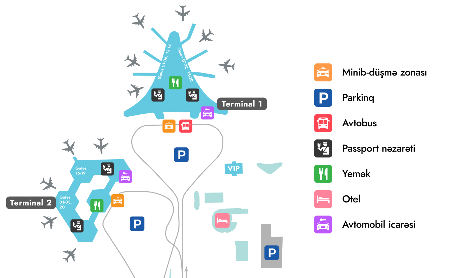 24/7 rejimində xidmət göstərən rəsmi lisenziyalı aeroport taksiləri şəhərin müxtəlif istiqamətlərinə rahat çatdırılmanı təmin edəcək. Bu taksiləri Terminal 1-də yerləşən xüsusi taksi məntəqəsindən və ya rəqəmsal platforma üzərindən sifariş etmək mümkündür.
